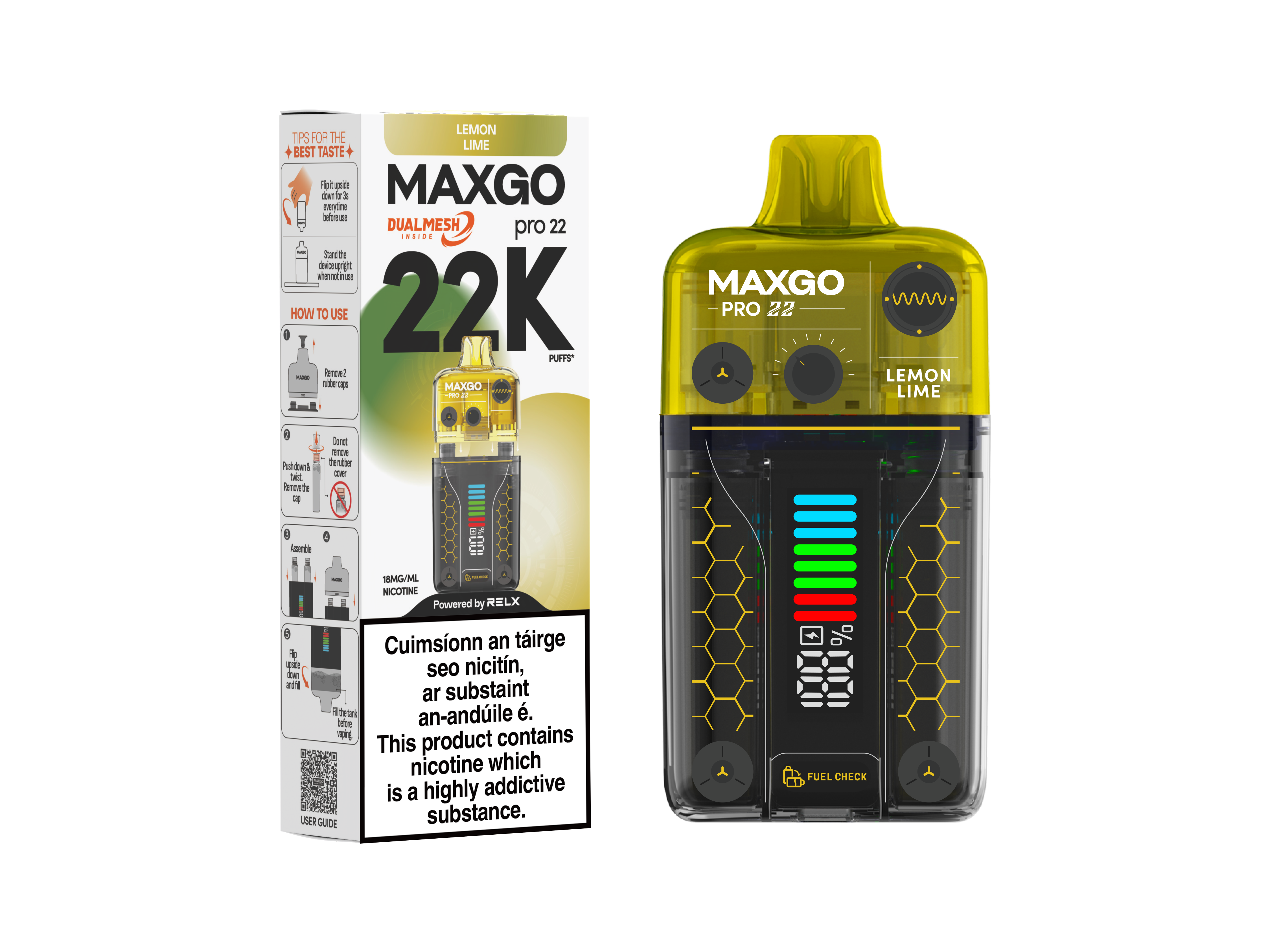 The MAXGO Pro 22 delivers up to 22,000 puffs on a single charge, making it perfect for extended use. Enjoy big, consistent clouds and flavor that lasts all day long.